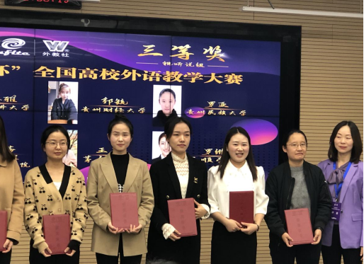 2022年11月12日至13日,第十三届“外教社杯”全国高校外语教学大赛(大学英语组)贵州赛区复赛、决赛在贵州大学成功举办,代表贵州民族大学参赛的米兰(中国)教师荣获佳绩:田甜副教授获一等奖、罗亚讲师获三等奖。特此祝贺!