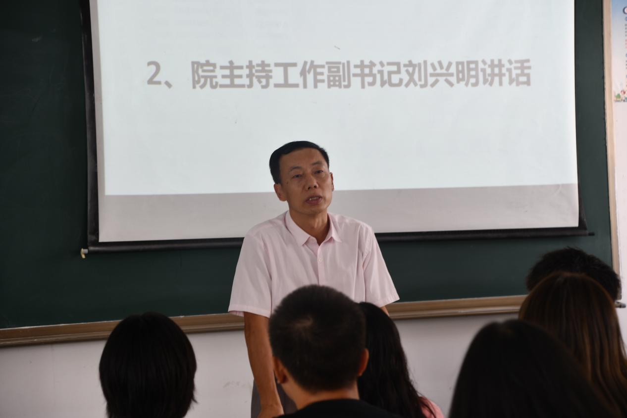 大会第二项,刘兴明副书记讲话。他表示,作为我院团委学生会的一员,要身体力行地将专业知识运用到现实生活中去,将理论知识转化为实践能力,真正做到学以致用。他强调,在今后地工作过程中,各部门负责人要树立集体利益大于个人利益这一重要意识并将这一意识传达给各干事,推动团委与学生会地融合,一同将部门工作做好做强。他对学生干部提出三点要求。一是各学生干部要以更高地标准严格要求自己,把学习成绩提高的同时还要要提高自己的办事能力,为学院办实事实现自我的全面发展。第二是要以身作则,严格遵循学校、学院的各项管理规定,为同学们做好表率作用。第三是要学会沟通和交流,把自己放入集体中,听取集体意见,为集体办事。