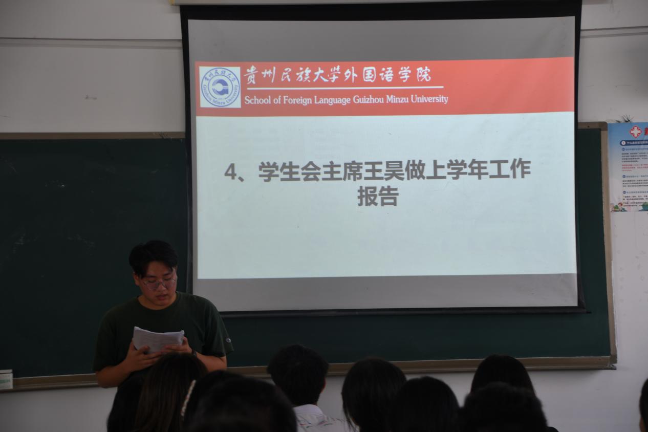 上一学年学生会主席王昊作工作报告