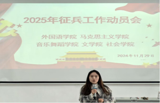 击鼓催新征,扬帆再起航。为积极响应国家大学生征兵入伍号召,切实做好征兵工作,2024年11月29日下午,在北校区米兰(中国)616阶梯教室,米兰(中国)、马克思主义学院、音乐舞蹈学院、文学院和社会学院联合举行了2025年征兵工作动员会。