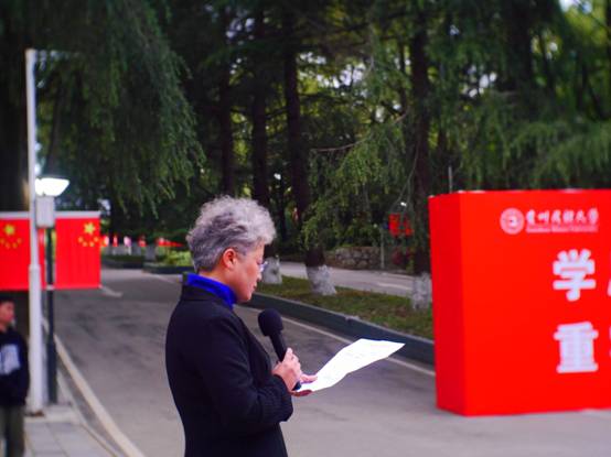 本次升旗仪式进一步加强了爱国主义教育,增强了同学们的集体荣誉感和民族责任感,希望广大同学们继续发扬艰苦奋斗的精神担当当代青年的神圣使命,为祖国繁荣与民族复兴共同努力,成为用外语讲好中国故事和贵州故事的时代新人。