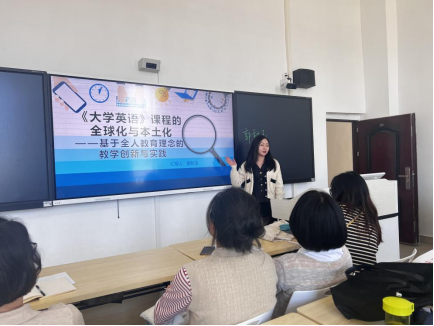 此次教研活动精彩纷呈,四位教师分别围绕不同的课文单元主题对教学技能进行了示范性讲授。田甜老师对《幸福》主题单元的教学设计注重“两性一度”,同时深挖课程思政元素,帮助学生树立正确的价值观。杜晖老师以培养学生翻译能力为教学核心,通过精心设计的教学活动,让学生在诙谐幽默的课堂氛围中习得翻译技巧。龚坤老师全英文讲解《垃圾岛》,对环保理念作了生动的课堂教学展示。郭秋玉老师则以《基于全人教育理念的教学创新与实践》为主题,完整地阐述了大学英语教学改革与创新的成效。她们凭借扎实的教学功底、独特的教学风格以及丰富多样的教学手段,赢得了在场同事的阵阵掌声。