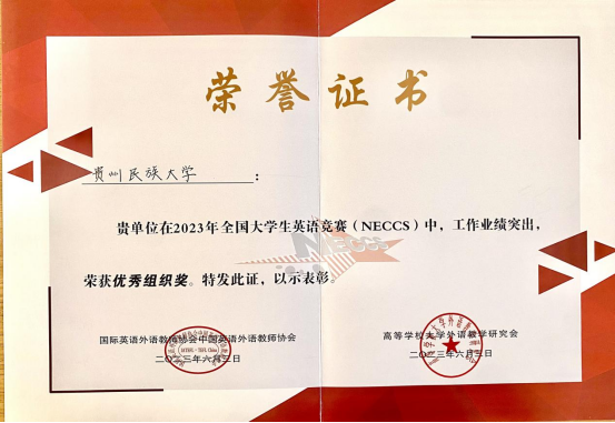 由于组织得力,业绩突出,贵州民族大学获得“优秀组织奖”荣誉证书。