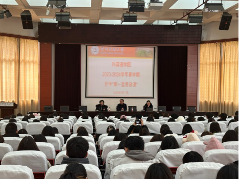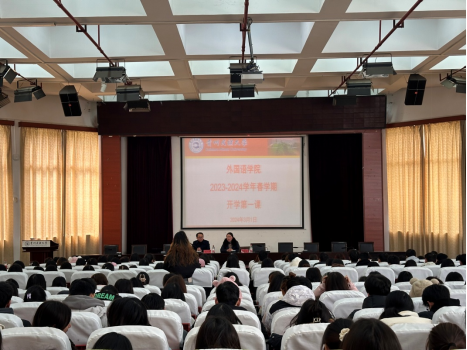 随后,赵艳副院长以“学业”为关键词为同学们上了“开学第一堂思政课”。她简要概括了当前的学习大环境,强调外语教学的重要性,对于外语专业的就业前景进行展望,同时也结合专业提出了一些学习的方法和方向,增强了同学们对外语学习的信心。