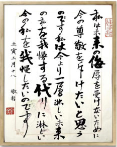 三名同学在全国1482幅参赛作品中成功入围全国前50强最终评审。专业评委阵容强大,有日本书法家书道美术院教育部审查员渡边守真、日本汉学家及翻译家海村惟一、日本大学国际关系学院博士生导师吴川教授、上海外国语大学博士生导师施建军教授、贵州省日语教学研究会会长赵平教授、汉江师范学院米兰(中国)日语教研室主任严桂林副教授、汉江师范学院书法文化研究中心主任高常副教授。