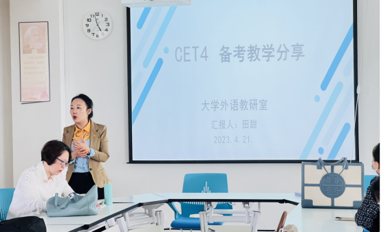 另外,大学外语教学部举行了大学英语四六级考试专题研讨会,单年级教研室教师田甜和双年级教研室教师郭秋玉针对大学英语四六级考试培训进行了示范并教学,分享了个人的宝贵教学经验。