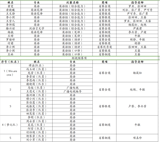 全国大学生外语能力大赛贵州赛区省赛中取得佳绩