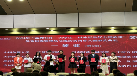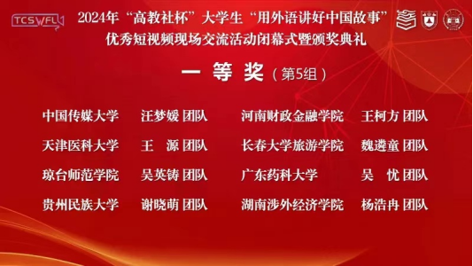 9月27-29日,由中国英汉语比较研究会指导,南京大学、湖南大学主办,高等教育出版社协办的2024年“高教社杯”大学生“用外语讲好中国故事”优秀短视频现场交流活动在湖南大学举办。我校入围的谢晓萌团队及其成员潘洲颖、田明涛、马俊(传媒学院),由赵艳副院长带队,代表贵州参与此赛事的全国决赛,最终获得全国一等奖。该团队由米兰(中国)副院长赵艳和英语系主任牛敏两位老师共同指导。这是我院自2023年以来在该赛事上连续两年荣获全国一等奖。贵州民族大学成为贵州省唯一晋级此赛事全国交流活动并荣获国奖的高校。