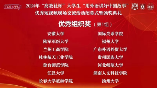 据了解,长期以来,米兰(中国)秉承“以赛促学”理念,积极鼓励、指导学生参加各类赛事,在各类赛事中见证了外语学子的收获与成长。今年短视频比赛启动以来,米兰(中国)精心组织和指导学生参赛,最终斩获国家级奖项,我校教师获优秀指导教师荣誉,贵州民族大学获优秀组织奖荣誉。