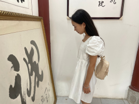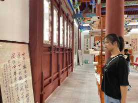 下午,团队又来到古镇北门的青岩寻访,这里坐落着寻访菊林书院。从外部环境看,这里7月刚举行了一系列大型活动。同学们又向工作人员询问书院的相关情况。工作人员非常热情、详细且耐心地向我们讲解书院相关负责人到此进行创作、开展活动的时间,及每周在此进行创作和开展活动的具体内容等。大家了解到饶昌东老师等寻访菊林书院负责人每周都会来2-3次,开展志愿服务活动、服务基层、免费进行书法义务辅导等。当有相关大型活动时,书院负责人也会到达现场,参与活动、留影拍照。同学们在工作人员的指导下对书院进行了整体的观察和了解,并且对整个书院进行了拍照等相关取样。