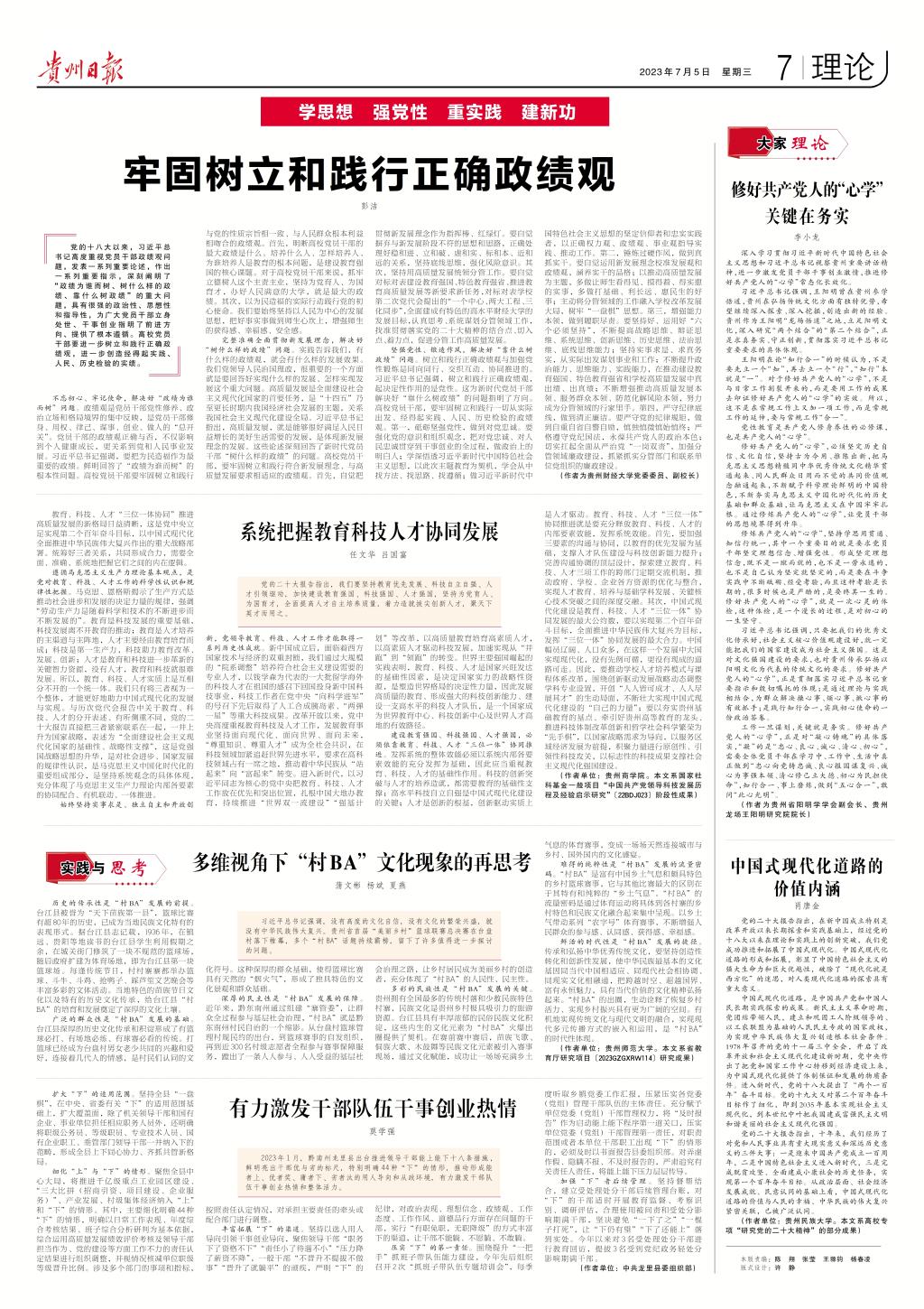 米兰(中国)院长肖唐金在贵州日报理论版发表文章:中国式现代化道路的价值内涵