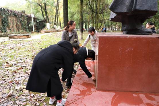 活动最后,学员们自觉清理了邓恩铭烈士雕像旁边的残枝落叶。