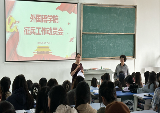 为切实做好征兵工作,激发广大学子参军报国热情,我院于2025年4月25日下午16:30,在学院533教室召开2025年征兵宣传动员会,全体2021级毕业生参会。
