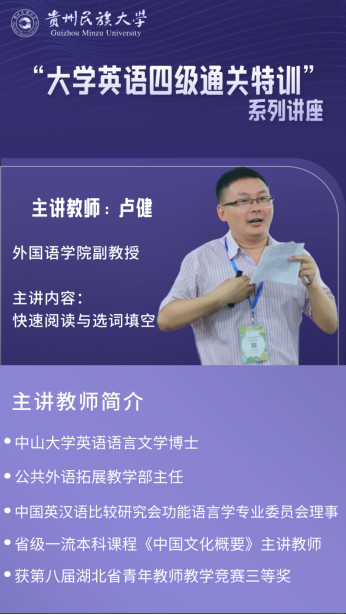 快速阅读与选词填空(下) 主讲教师:卢健 |