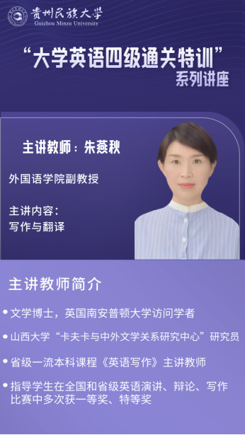 写作与翻译(下) 主讲教师:朱燕秋 |